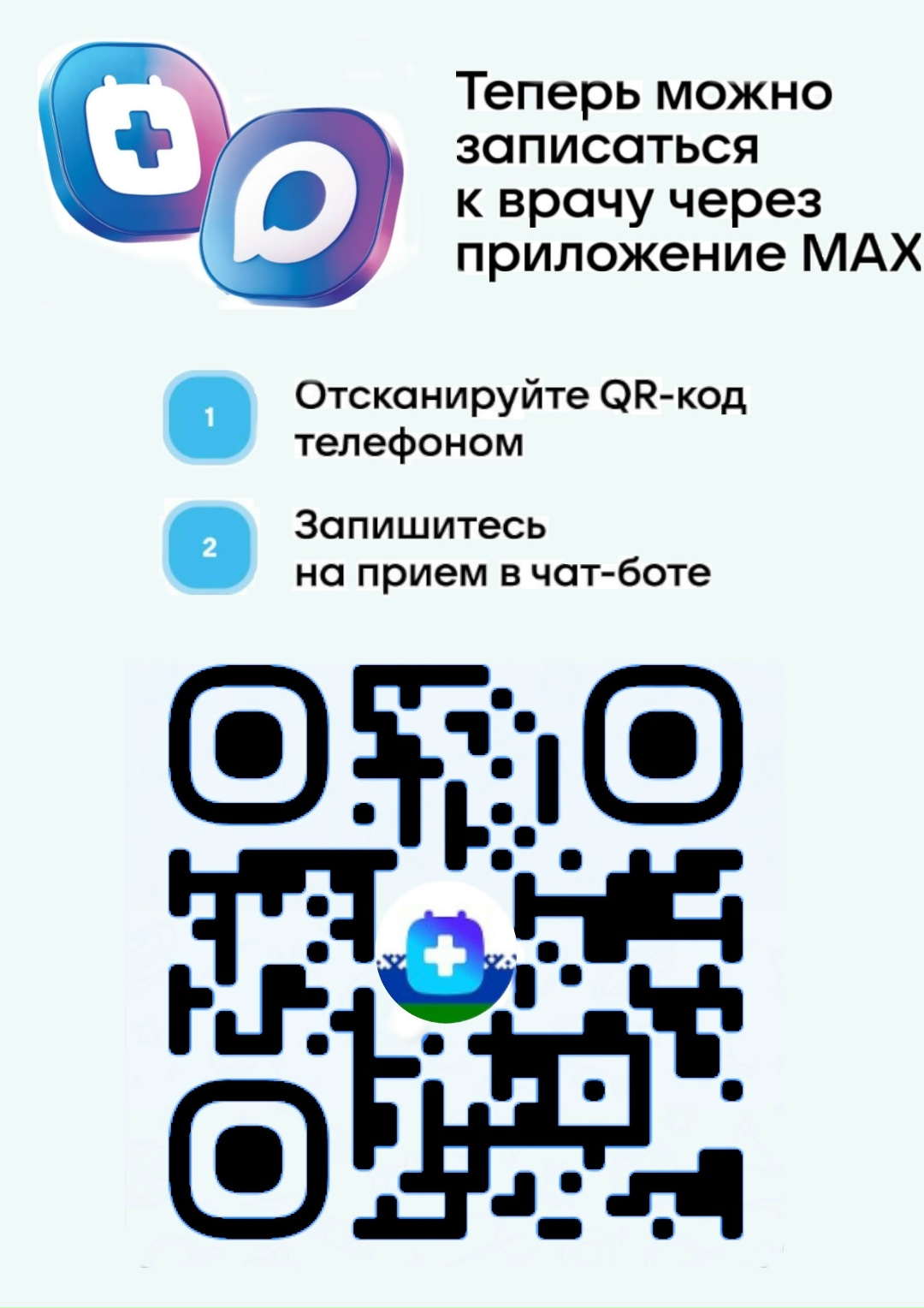 Найдите чат-бот «НАО Запись к врачу» через поиск в мессенджере МАХ, запустите чат-бот по ссылке max.ru/zdrav83_bot или отсканируйте QR-код, размещённый выше, камерой телефона.